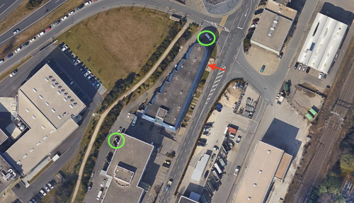 En chargeant Google Maps, vous autorisez la configuration de cookies d'analyse et le stockage de votre adresse IP sur les serveurs de Google. Politique de confidentialitéEntrée (en rouge) et places de park (en vert)